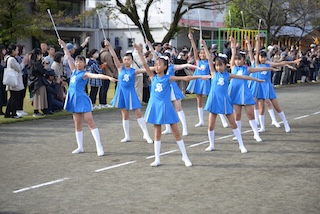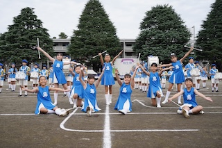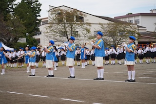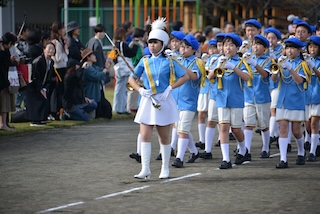 パレードのあとは、全校でのグランドドリル演奏です。この日のために練習を頑張ってきた6年生。全体をリードしながら、素晴らしい演奏を披露していました。