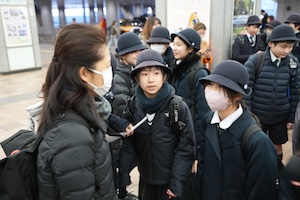 新横浜駅に集合し、副校長先生から「楽しく、お互いが気持ちよく過ごせる、そして学びの多い修学旅行にしましょう。」と話をいただきました。