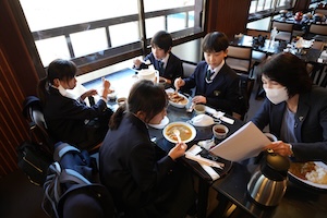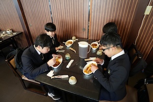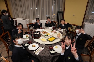 薬師寺見学を終えた後は、ホテルに移動しました。今年もお世話になるのは京都山科ホテル山楽さんです。ホテルの方にご挨拶した後、夕食をいただきました。見学でしっかり歩いたので、ご飯を何杯もお代わりしている子もおり、美味しくいただくことができました。