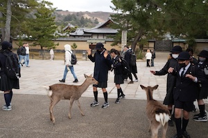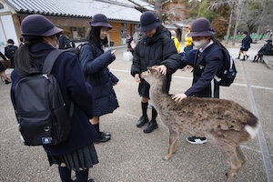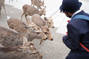 一通り見学が終わった後は、境内に1465頭生息するあの生き物との触れ合いを楽しみました。