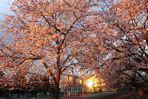 夕方、校舎前の桜の木に夕日が差して、思わぬ風景を見せてくれました。