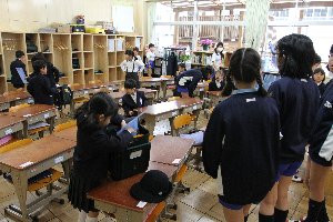 教室内でも、上級生が新入生の着替えを手伝ったり、荷物をしまうなどのお手伝いをしている光景が見られました。