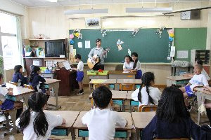 4年生の教室の前を通りかかると、ギターの音が聞こえてきました。