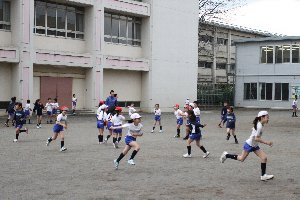 昼休み、校庭では子どもたちが一斉に外に出て遊びはじめました。