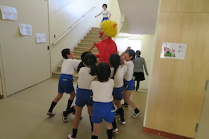 2年生の攻撃はさらに強力、鬼は教室の外まで追い出されてしまいました。