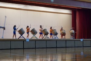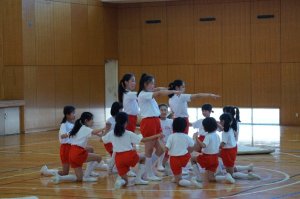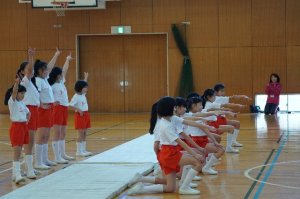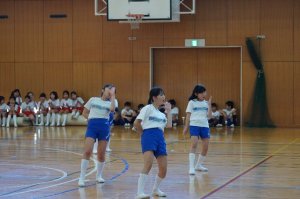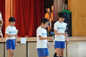 午後はクラブ発表があります。今年は、落語・たる太鼓・バトン・けん玉・体操の各クラブが発表しました。