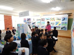 1年生から4年生までは、担任の先生と一緒に作品を見て回ります。
