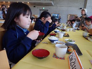 今学期は、「おはしと和食マスターになろう」と題して、高知大学教育学部教授の針谷順子(はりがい よりこ)先生をお招きして和食のいろはを子ども達にお話していただきました。和食器の種類や置き方、箸の上げ下げなど毎日何気なくとっている食事の中にも様々な所作があることを、実際に子ども達が普段使っている食器を使って体験することができました。