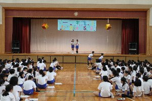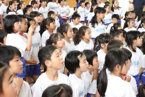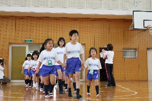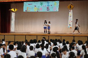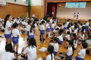 司会はもちろん6年生。開会式では、上級生が「幸せなら手をたたこう」の替え歌で1年生を歓迎しました。
