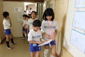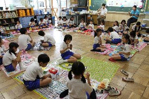 所属のたてわり班にそのまま合流です。上級生が笑顔で迎えてくれました。