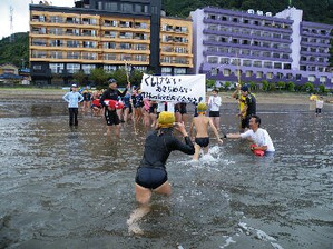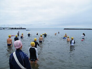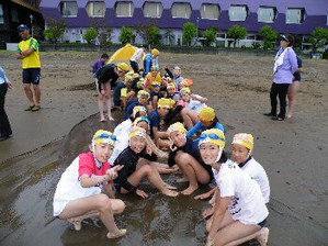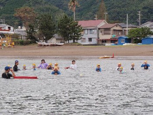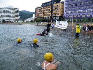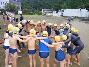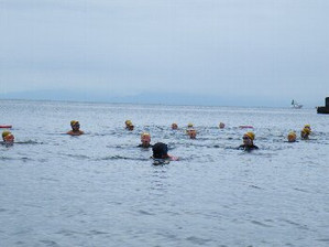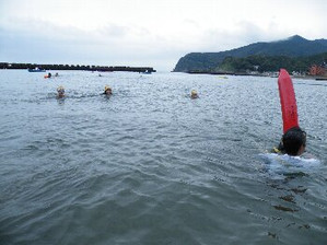 続いて、B1&2チームが小遠泳に挑戦です。沖合のフロート上陸にチャレンジです。