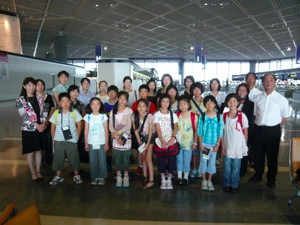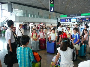 子どもたち12人と引率教員2名、添乗員の合計15名で今年のホームステイは出発です。