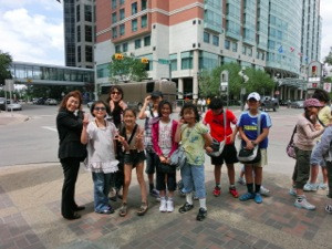 今日は、まずカルガリー市内の見学です。昼食の後、世界一高い?タワーと言われているカルガリータワーに上りました。