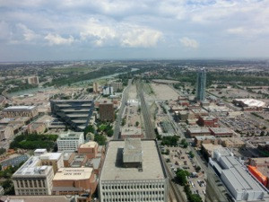 世界一とは言っても、標高1000mの場所に作られているため、世界一高いのだそうです。形は横浜のマリンタワーによく似ています。このタワーから、カルガリー市内を一望することができます。