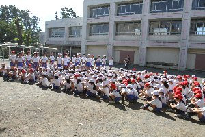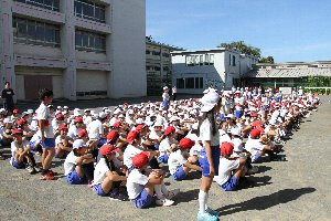 朝の校庭では、恒例の全校朝会が開かれました。今朝の朝会は任命式です。