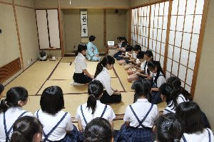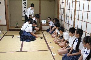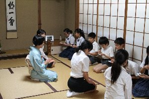 3、4時間目、学園内翠葉会館(すいようかいかん)茶室で6年生の「つなぐ手」茶道体験が行われました。