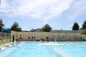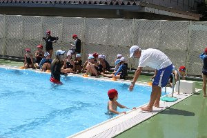 プールでは、水泳の授業が行われていました。