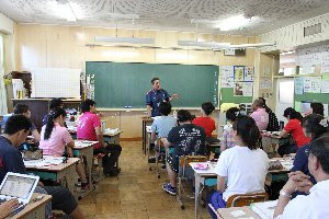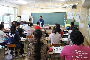放課後、教員研修会が開かれました。相模原南消防署から署員の方をお招きし、防災についての学習会です。