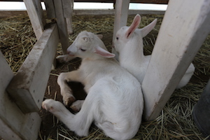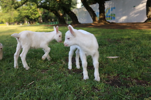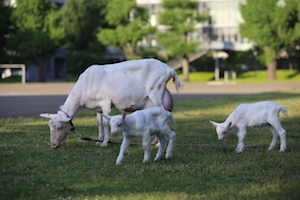 子ヤギたちにはまだまだ草は食べられません。