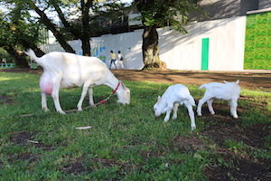 ヤギたちの様子や、学園内が静かなこともあってヤギ達をグラウンドの草むらに連れ出すことにしました。