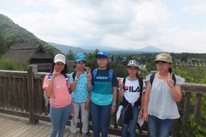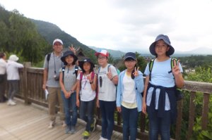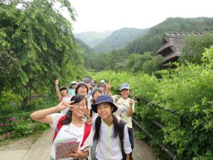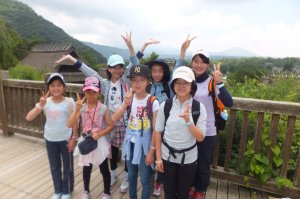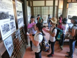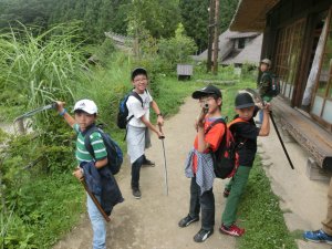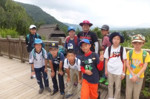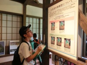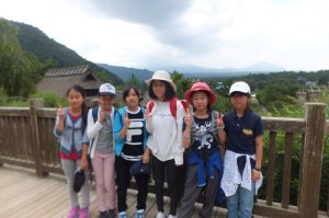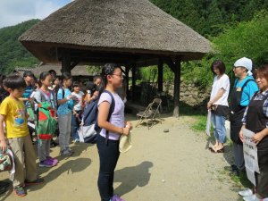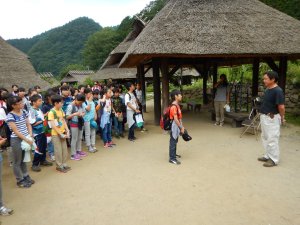 「西湖いやしの里根場」は、かつて台風の土石流被害により、大きな災害が起こった場所です。その村の雰囲気を今に復元するために作られた場所でもあります。その時の様子について、当時の資料や実際に被害にあった方のお話を聞きながら、防災について学びました。真剣に展示物を見て、メモを取る姿は、子どもたちの学習意識の高まりを感じました。