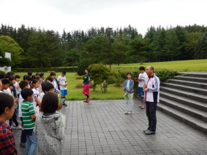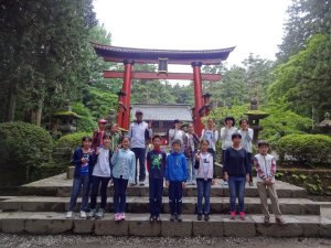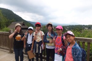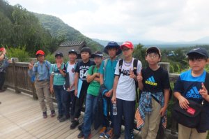 6時からの自由時間では、富士Calmから、歩いて10分ほどのところにある浅間神社へ散歩に行った子どもたちもいました。浅間神社は、日本一の木造の大鳥居がある、平安時代からの富士登山信仰の中心地です。