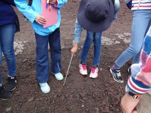 溶岩に水をかけてみたり、スコリアに磁石を近づけたりして、体験的に学びました。