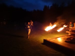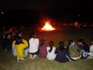 2日目の午後は、子どもたちの最大のお楽しみの一つキャンプファイヤー!ゴッドファイヤーの登場でキャンプファイヤーがスタートしました。