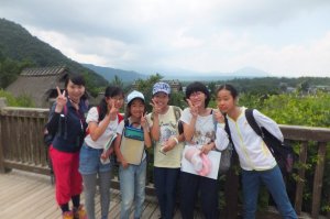 根場での記念写真。残念ながら、背景に見えるはずの富士山は雲の中でした。
