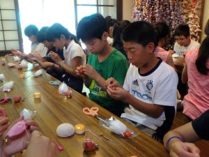 指導してくださる方の話に真剣に耳を傾けながら、一生懸命に製作しました。出来上がった自分の作品は素敵なお土産になりました。
