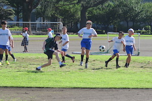それでも朝の大グラウンドでは、体操着に着替えた子どもたちと一緒になってサッカーを楽しむ姿が見られました。
