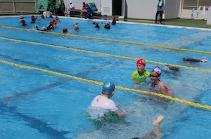 一番生き生きと参加できたのは、やはり体を動かすプールでの水泳の授業でした。夏が戻ってきたような日差しの中、皆、気持ちよさそうです。