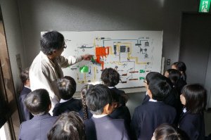 子どもたちのために易しく作られたDVDで学習もして、工場の方に質問をしました。子どもたちは熱心にメモをとっていました。