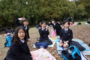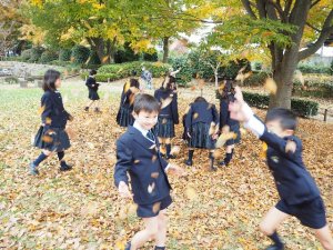 お昼は、北清掃工場の近くの公園でとりました。紅葉が美しく、子どもたちは葉っぱを掛け合って遊んでいました。