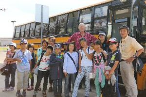 乗馬体験から、オコトクス戻ってきました。2日間、子供たちをバス送迎してくれた運転手さんと玄関前で記念撮影をしました。