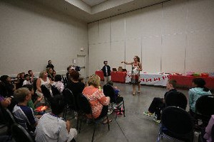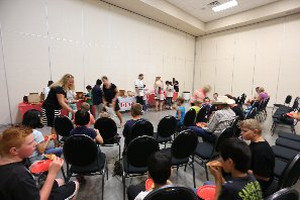 会場は、3日前にwellcome ceremonyが行われた場所です。午後6時、ホストファミリーの方達が集まって来ました。まずは、用意して頂いたピザと飲み物で腹ごしらえ。