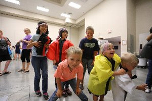 歌に続いて日本の伝統的な盆踊りをみんなに踊ってもらおうと、「炭坑節」を披露しました。ホームステイ出発前に行なわれた納涼祭でも踊られた曲です。繰炭坑節は踊りのフレーズが何度も繰り返されるので覚えてしまうと、何とか形になります。