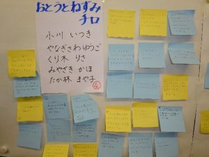2組では、音読に対して、参加してくださった保護者の皆様から感想を付箋に書いていただきました。「堂々と音読していますね。」「役になりきっていますね。」「楽しそうでした。」といった言葉が付箋に書かれていて、子どもたちの励みになったと思います。