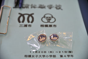 お土産に横浜港のシンボルマークの入った素敵なピンバッジをいただきました。
