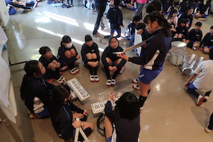 演奏の仕方やリズムの合わせ方など、自分たちが苦労したことも伝えます。