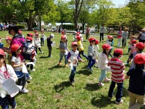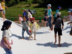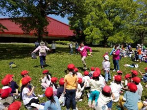 お弁当の後は、思いっきり遊びました。トランポリンや丘のぼりを楽しんだり、お菓子交換で盛り上がったり、子どもたちの笑顔がとてもかわいかったです。遠足を通して、また、一つ子どもたち同士、そして、子どもたちと先生の距離が近づきました。とても素敵な時間となりました。