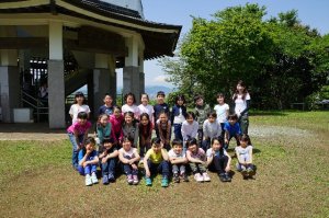 権現山でクラス写真を撮影しました。今日はお天気もよく、権現山の頂上からは、富士山が見えました。