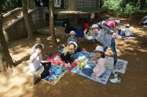 弘法山でお待ちかねのお弁当タイム。外で食べるお弁当は、いつもより美味しく感じました。