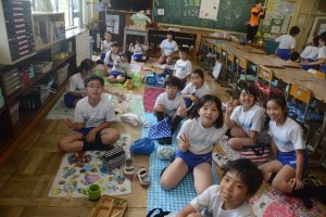 お弁当タイムでは、自己紹介をしたり、1年生にプレゼントを渡したりして歓迎しました。