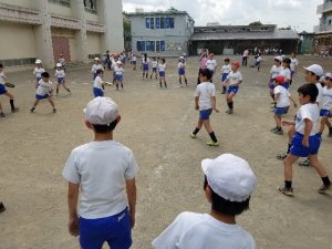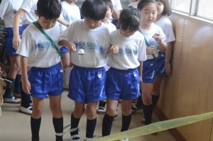 さあ、ゲーム会場に出発。5年生が中心になって下級生を連れて移動です。