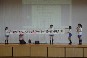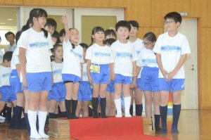 歓迎の歌を歌い、全校で歓迎の合い言葉を伝えました。