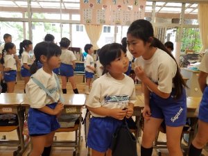 校長先生から「縦割り班で上級生の役割を果たしましょう。そして、一年生は上級生を頼ってがんばって下さい」というお話がありました。