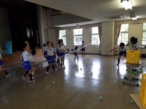 ゲーム会場では、6年生がゲームの準備をして待っています。