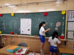 食事をとる部屋では、6年生が教室を飾って待っています。