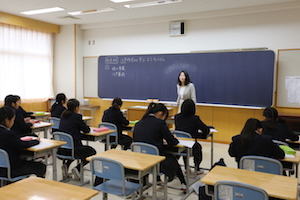 授業は、国語と社会です。中学生になると先生は全て専門の教科の先生です。